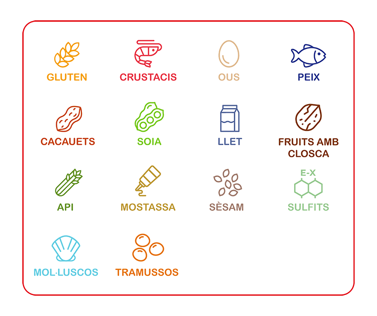 Emmental (llet crua Vaca)+ Appenzeller (llet crua Vaca) +Gruyere Reserva (llet crua vaca)+Gouda (pasteuritzada Vaca)+Parmesà (Pasteuritzada vaca)